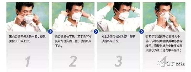醫(yī)用的多了合成血液穿透測(cè)試。所以,大家買NIOSH N95和GB2626-2006 KN95的口罩是一樣的。佩戴口罩的關(guān)鍵在于和面部的密合,請(qǐng)看下面佩戴說明: