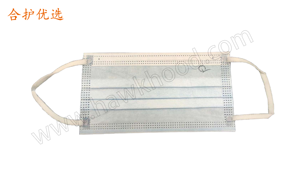口罩體為三層,內(nèi)層、外層為聚丙烯紡粘無(wú)紡布,中間過(guò)濾層為聚丙烯熔噴無(wú)紡布;