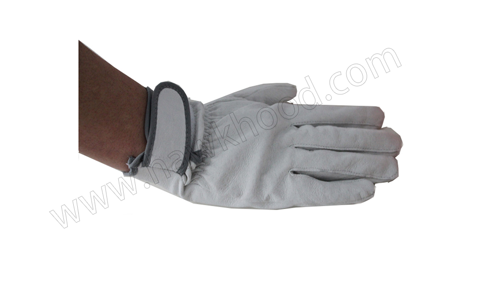 白色豬皮手套,手背部手腕帶扣
