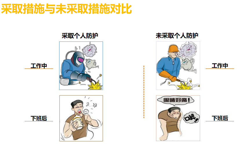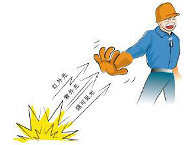 紅外光對人體的危害主要是引起組織熱作用。焊接作業時,眼 部收到強烈的紅外輻射,立即感到強烈的桌上和灼痛,發生閃光幻 覺。